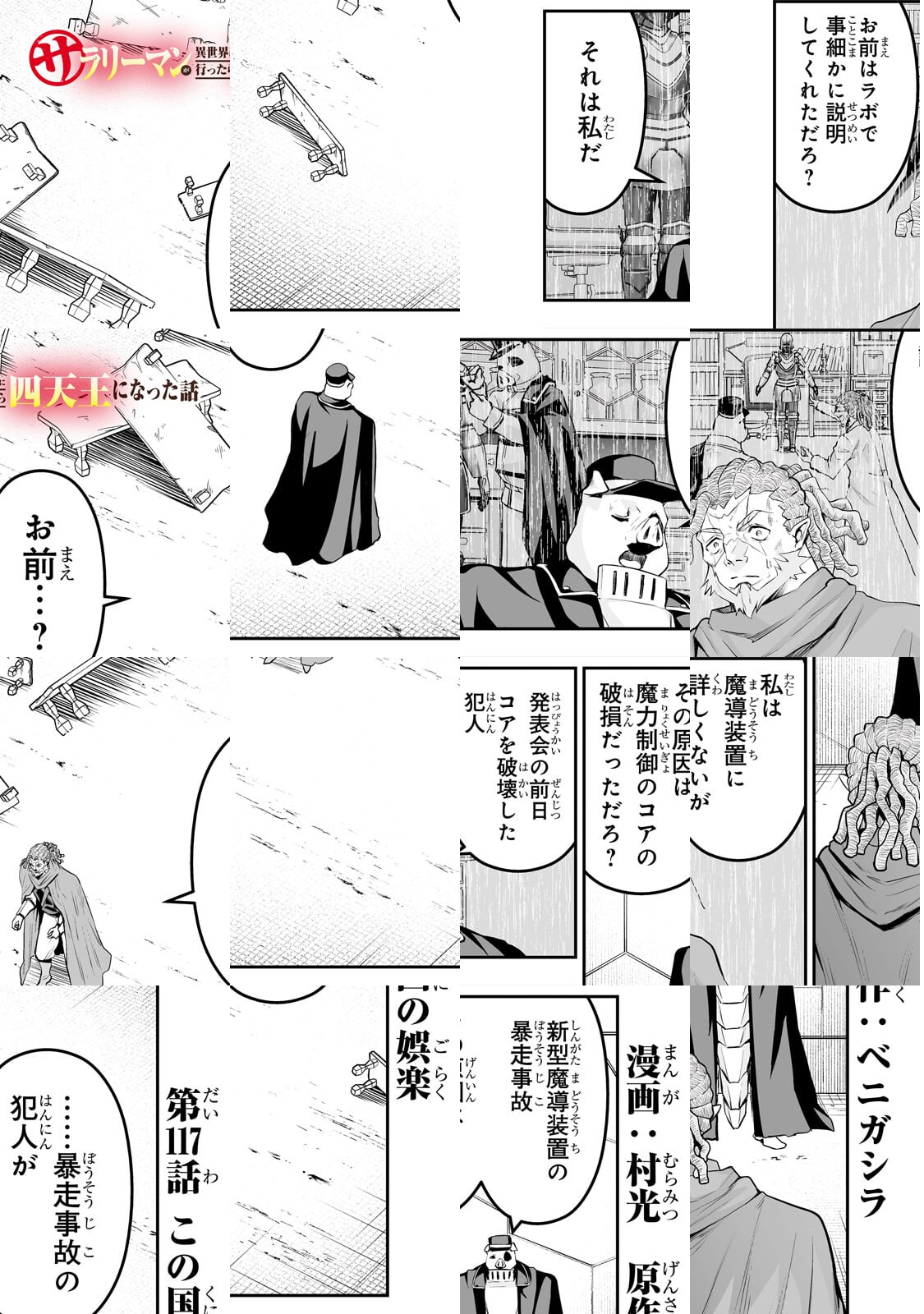私、ベニガシラはサラリーマンしながら漫画家をしているんですが、まさかサラリーマンが主人公の漫画を描くとは思いませ んでした。チートスキルも、最強武器も持っていない、ただの サラリーマンが異世界で活躍するこのマンガ、楽しんでいただ けると幸いです。