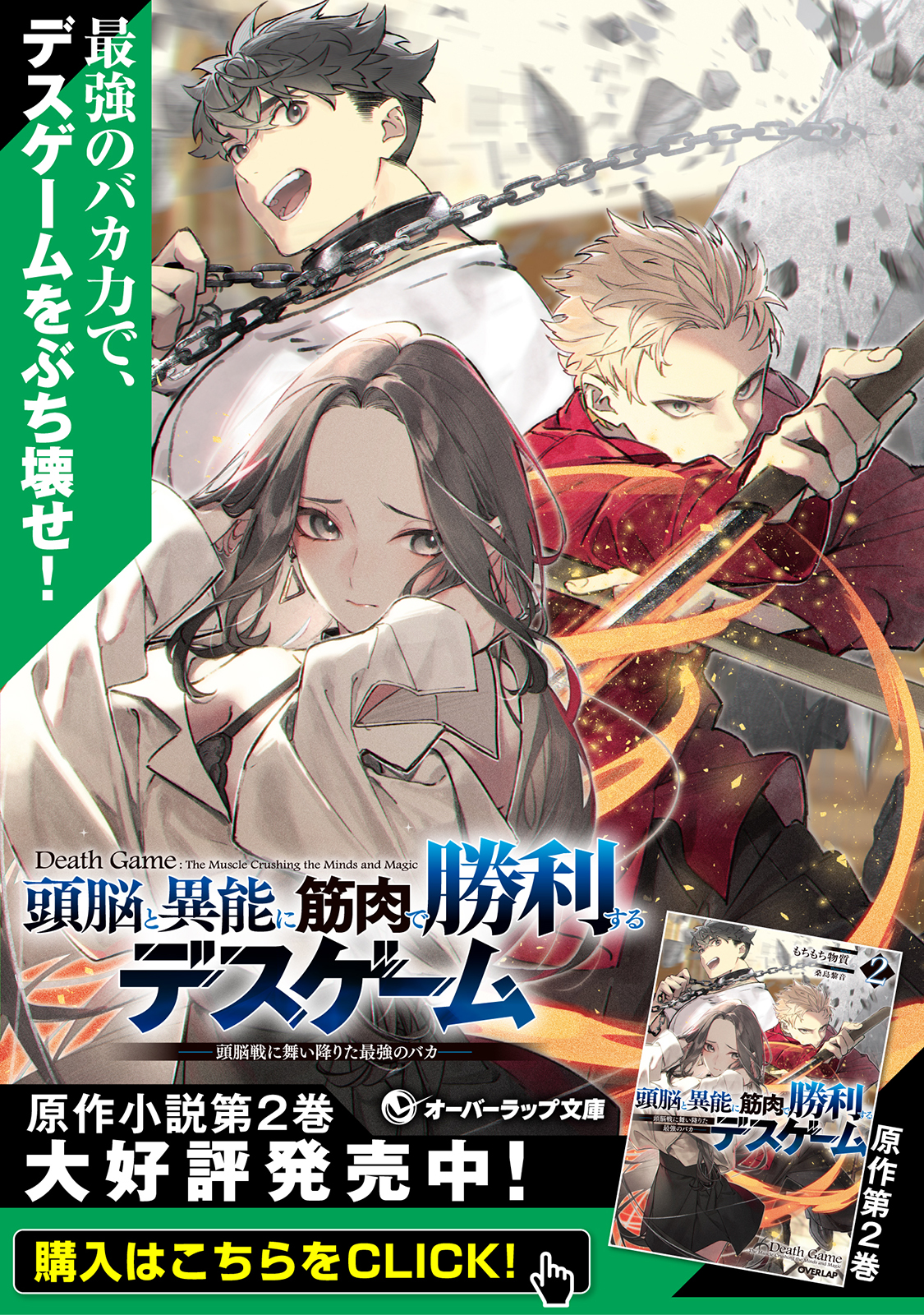 目を覚ますと、毒入りの首輪で壁に繋がれていた――そう、これは悪魔が主催するデスゲーム。与えられた異能と知略を巡らせ、他の参加者を殺すことで自らの願いを叶える殺人遊戯……のはずだったが、繋がれた首輪は引きちぎり、閉ざされた鉄の扉はぶち破る、最強の脳筋バカ・樺島剛が紛れ込んでしまいゲームは大崩壊!? 悪魔すら予測不能の最強デスゲーム譚、ここに開幕!!