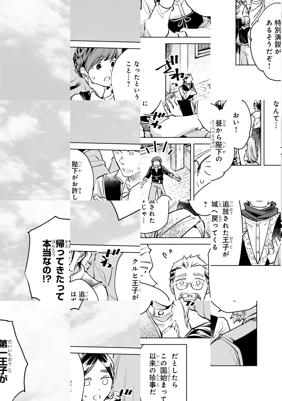尊大で自信過剰な王子・クルヒは、その目に余る振る舞いのせいで王宮から追放されてしまう。城下町を彷徨い歩き辿り着いたのは、重度の宮廷モノオタクの少女・エマが営む宿屋だった。かつての華美な姿を失ってしまったクルヒに、エマの“解釈違い”が炸裂!そしてエマは大好きな“推し”を復活させるため、ある計画を始動する――!