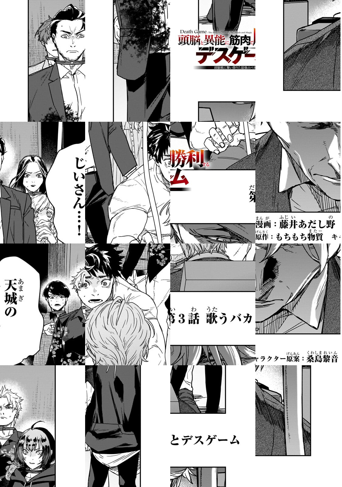 コミカライズ担当の漫画家・藤井あだし野です。もちもち物質先生の軽妙かつ緻密なストーリーテリングと、桑島先生の美麗なキャラメイクに乗っかりつつ、全力で描かせていただきます。バカと筋肉の樺島と、バカと筋肉に振り回されるデスゲーム参加者たちと、大体バカと筋肉で解決していくデスゲームを楽しく読んでいただけたら幸いです。