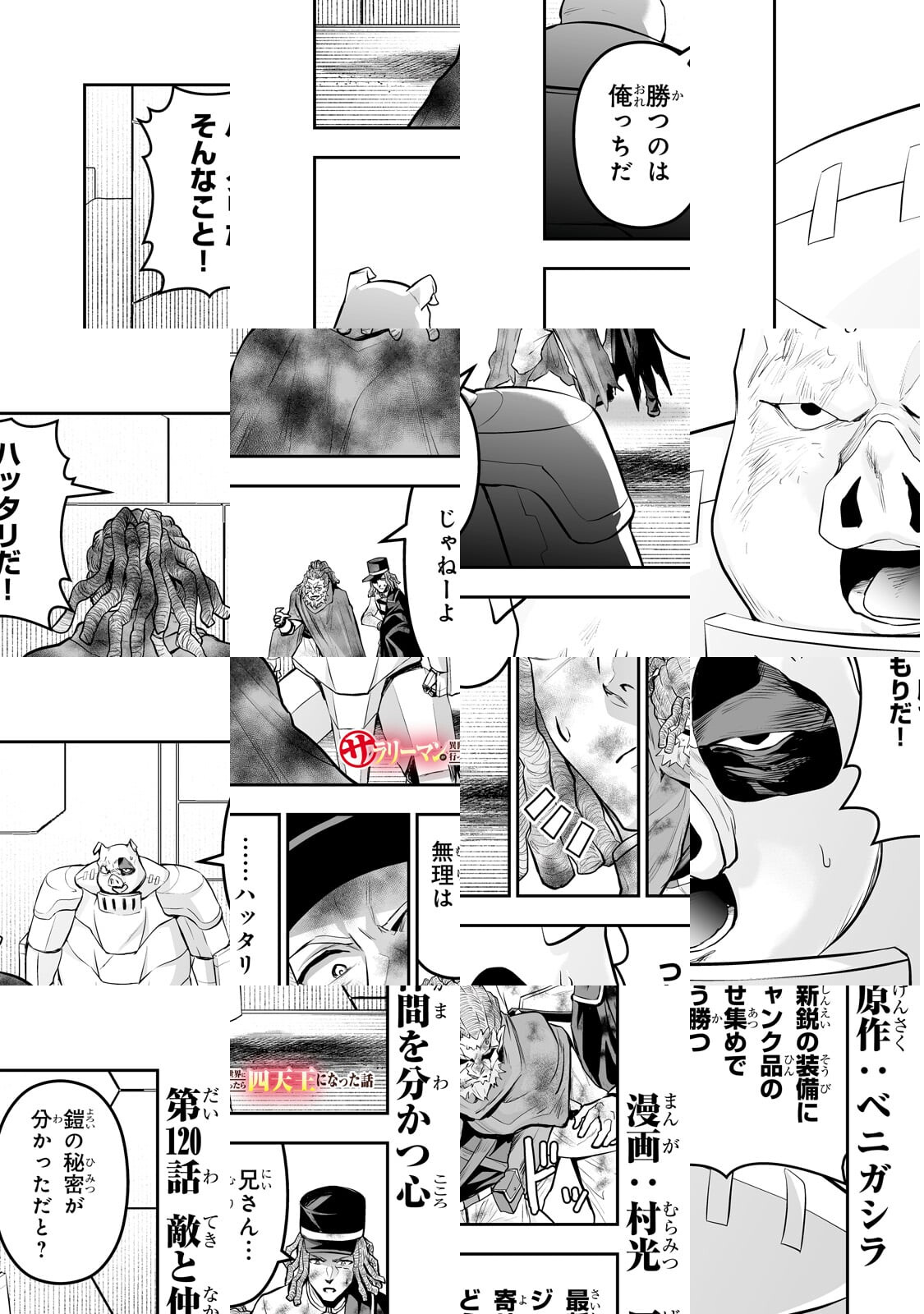 私、ベニガシラはサラリーマンしながら漫画家をしているんですが、まさかサラリーマンが主人公の漫画を描くとは思いませ んでした。チートスキルも、最強武器も持っていない、ただの サラリーマンが異世界で活躍するこのマンガ、楽しんでいただ けると幸いです。