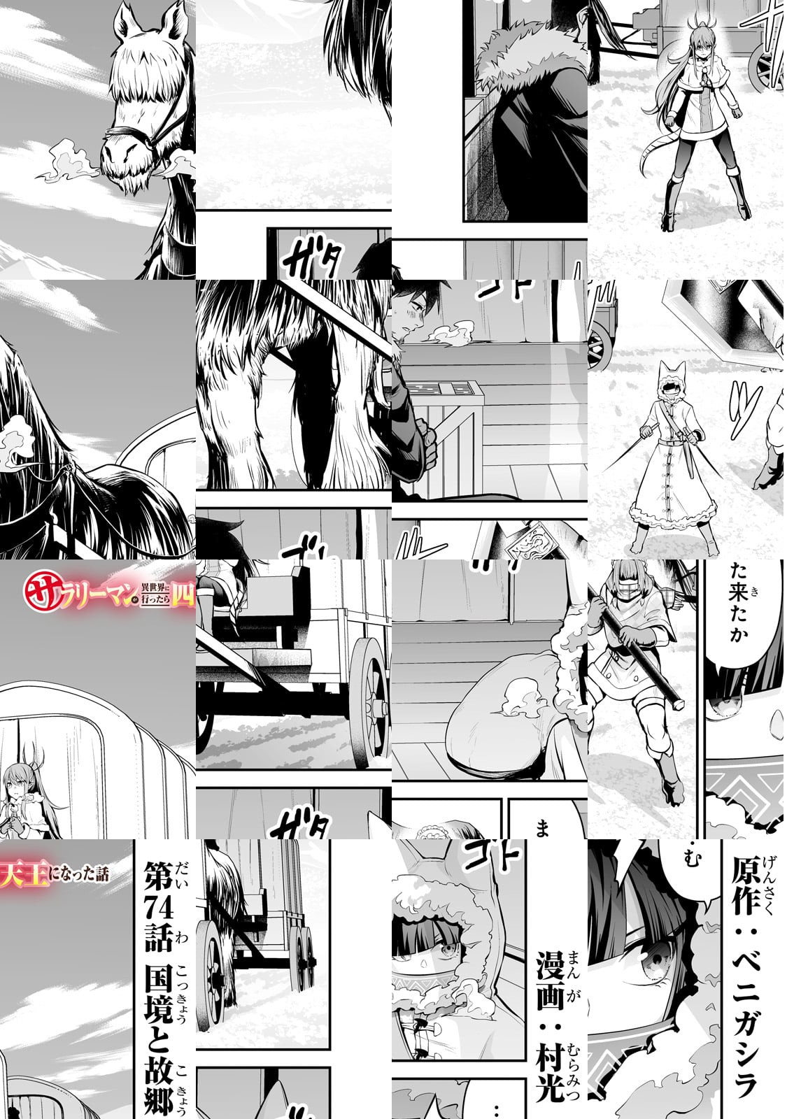 私、ベニガシラはサラリーマンしながら漫画家をしているんですが、まさかサラリーマンが主人公の漫画を描くとは思いませ んでした。チートスキルも、最強武器も持っていない、ただの サラリーマンが異世界で活躍するこのマンガ、楽しんでいただ けると幸いです。