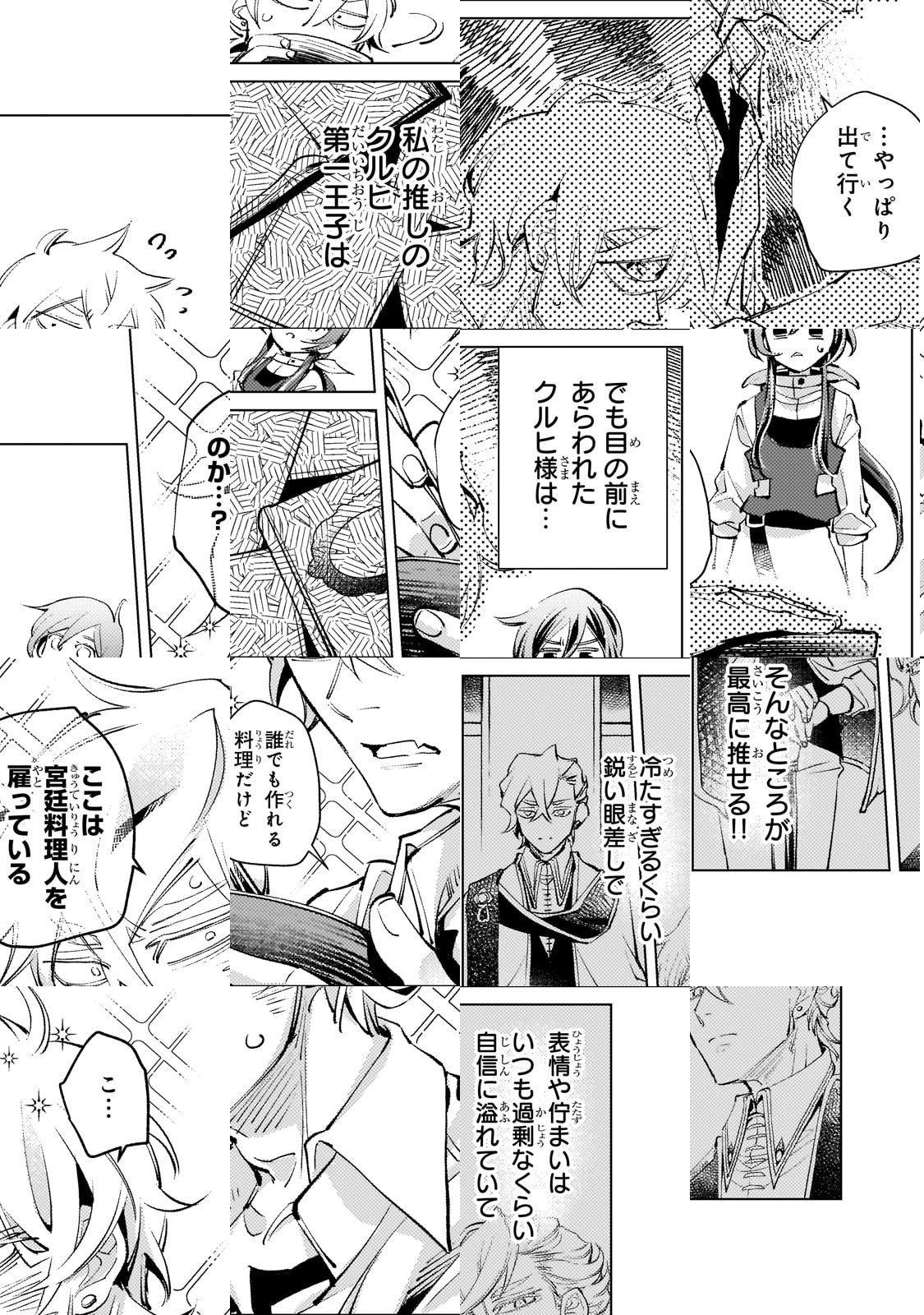 尊大で自信過剰な王子・クルヒは、その目に余る振る舞いのせいで王宮から追放されてしまう。城下町を彷徨い歩き辿り着いたのは、重度の宮廷モノオタクの少女・エマが営む宿屋だった。かつての華美な姿を失ってしまったクルヒに、エマの“解釈違い”が炸裂!そしてエマは大好きな“推し”を復活させるため、ある計画を始動する――!