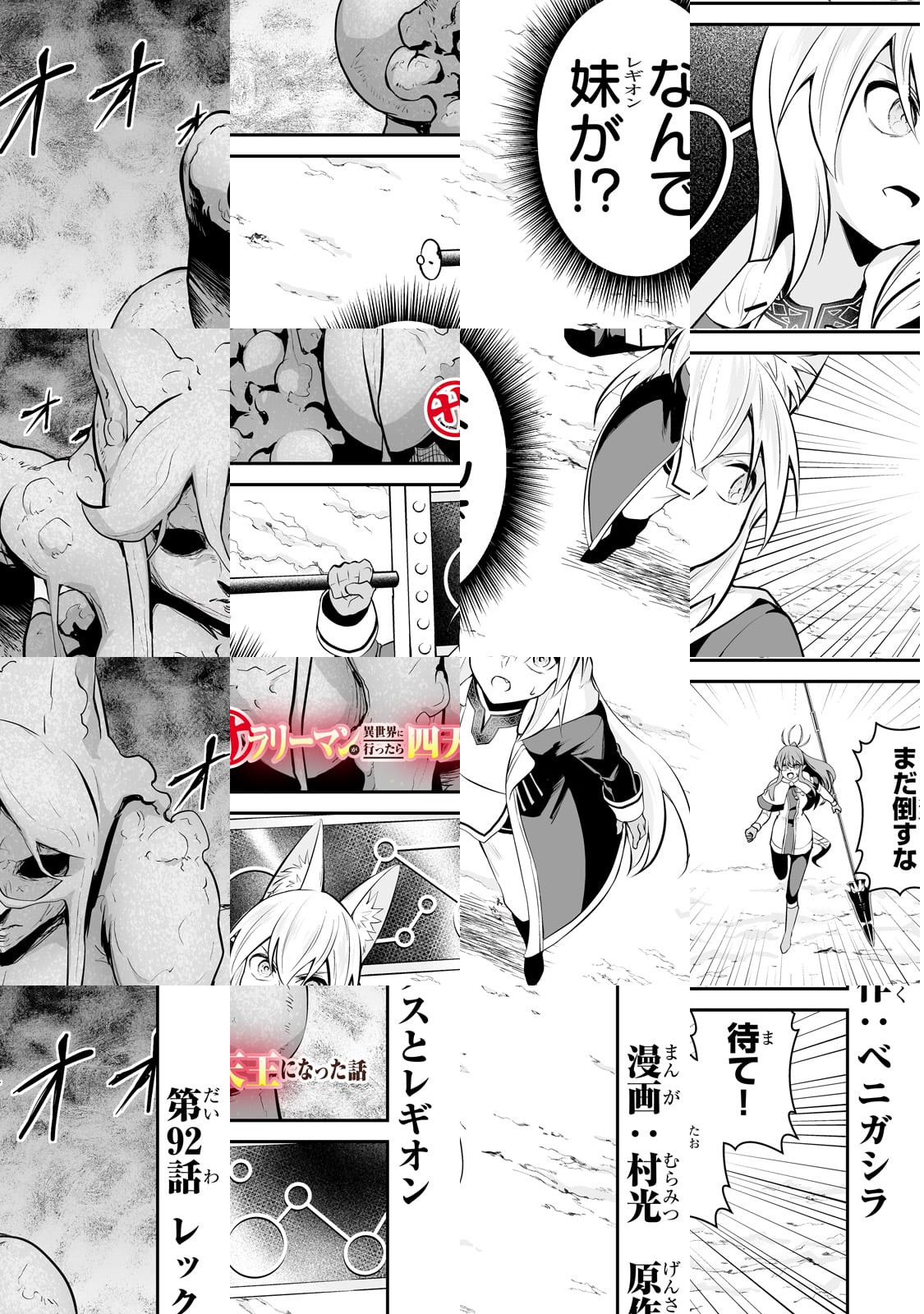 私、ベニガシラはサラリーマンしながら漫画家をしているんですが、まさかサラリーマンが主人公の漫画を描くとは思いませ んでした。チートスキルも、最強武器も持っていない、ただの サラリーマンが異世界で活躍するこのマンガ、楽しんでいただ けると幸いです。