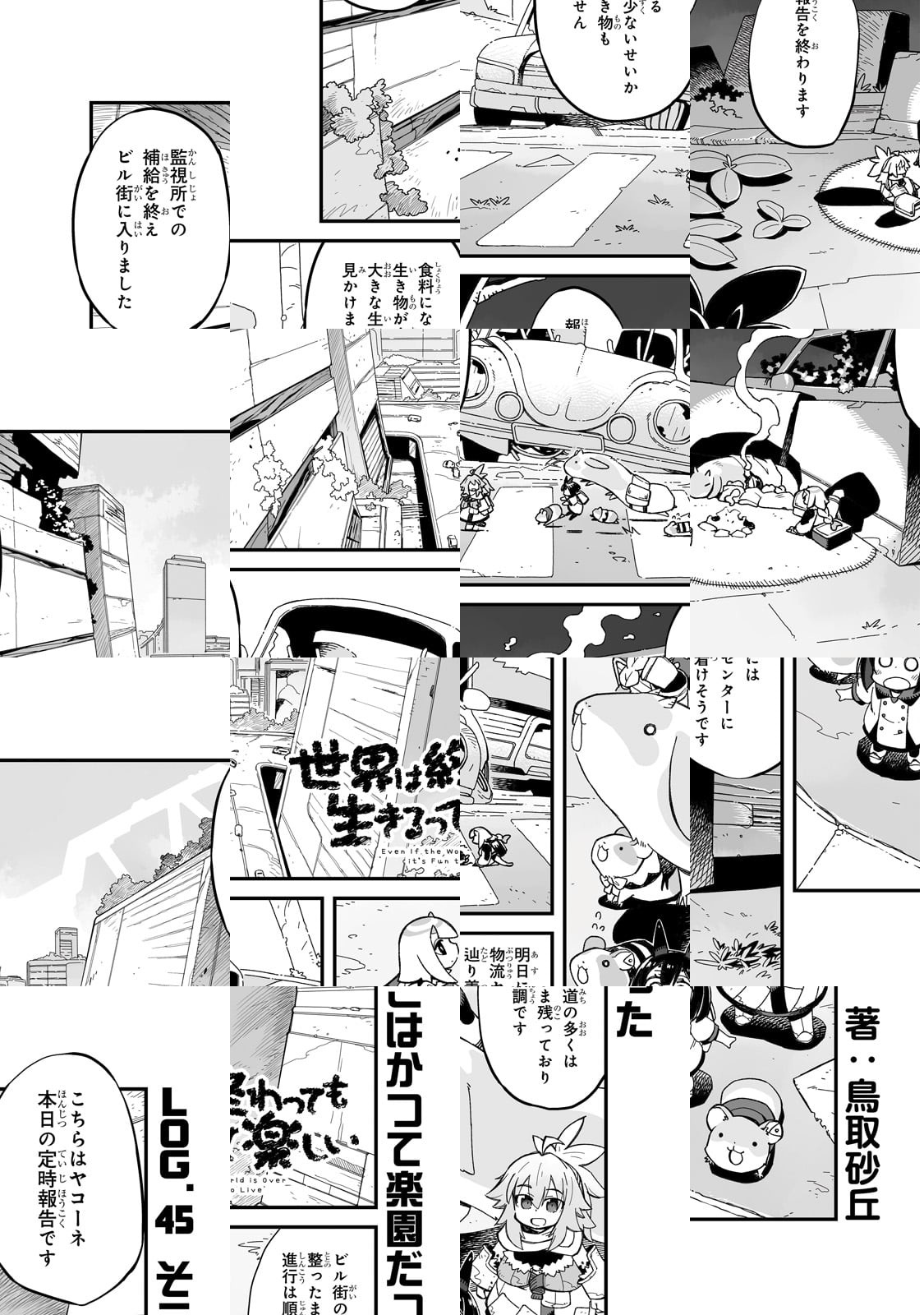 今日も発見や出会いがあるから――。滅びてしまった世界を往く少女たちは、様々なものとの出会いを経験する。過ぎ去った文明の残滓、自分達とは違うイキモノ、滅びと共に生まれた価値観……まだ世界には、色々あるんだ。だから――生きるのは、楽しいんだ。