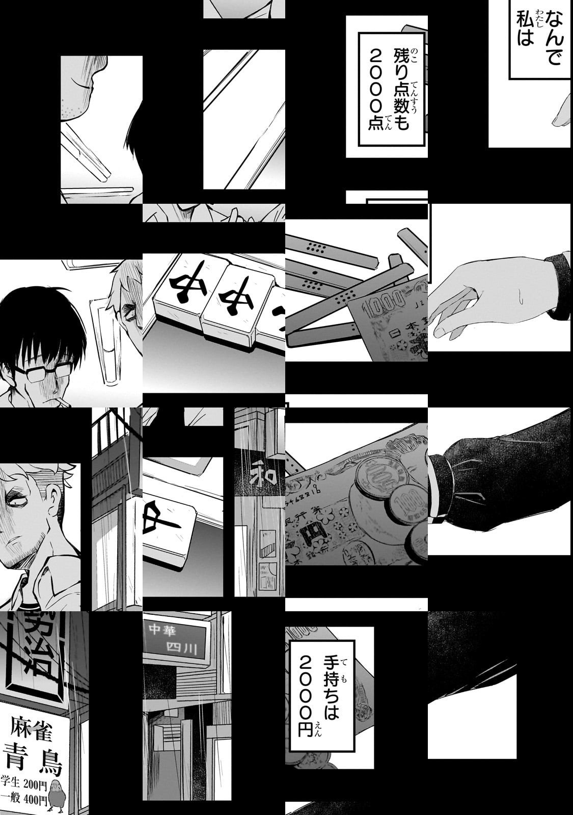 相模の宇城はやひろは浅学非才、若くして麻雀を覚え、会社員を辞し雀ゴロを目指したが雀力は容易に上がらず、FXには負け、日を逐うて生活は苦しくなる。己の境遇と力量を肯ぜず、臆病な自尊心と尊大な羞恥心に苛まれた宇城はやひろの中にやがてひとつのおかっぱ眼鏡女子中学生の人格が生じる。その名を紙屋院文という。