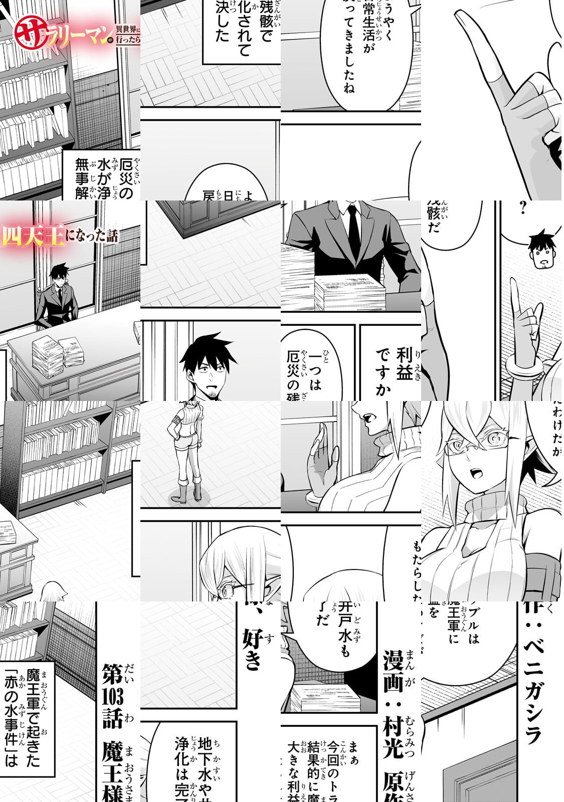 私、ベニガシラはサラリーマンしながら漫画家をしているんですが、まさかサラリーマンが主人公の漫画を描くとは思いませ んでした。チートスキルも、最強武器も持っていない、ただの サラリーマンが異世界で活躍するこのマンガ、楽しんでいただ けると幸いです。