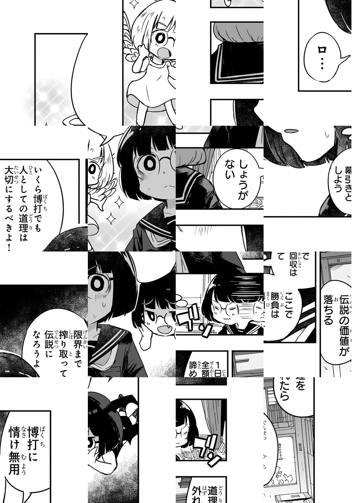 地味系女子・紙屋院 文(かみやいん ふみ)は中学1年生。黒髪おかっぱ丸眼鏡、スカートの丈はひざ下まで――そんな彼女の特技は麻雀! しかもただ打つだけじゃなくて"秘密の快楽"を得ているらしい!? 未成年の賭博が合法化された日本を舞台に、麻雀の射幸性に脳を焼かれた少女たちの人生を描く、ちょっとアブない麻雀ガールズコメディ!!