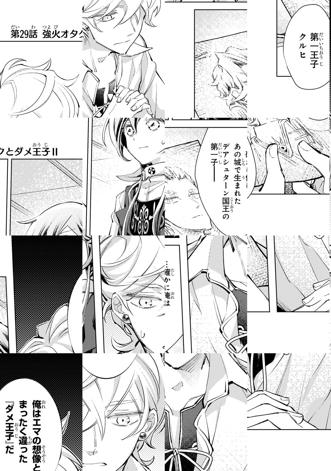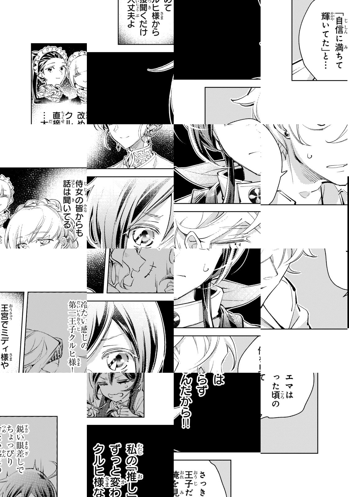 尊大で自信過剰な王子・クルヒは、その目に余る振る舞いのせいで王宮から追放されてしまう。城下町を彷徨い歩き辿り着いたのは、重度の宮廷モノオタクの少女・エマが営む宿屋だった。かつての華美な姿を失ってしまったクルヒに、エマの“解釈違い”が炸裂!そしてエマは大好きな“推し”を復活させるため、ある計画を始動する――!