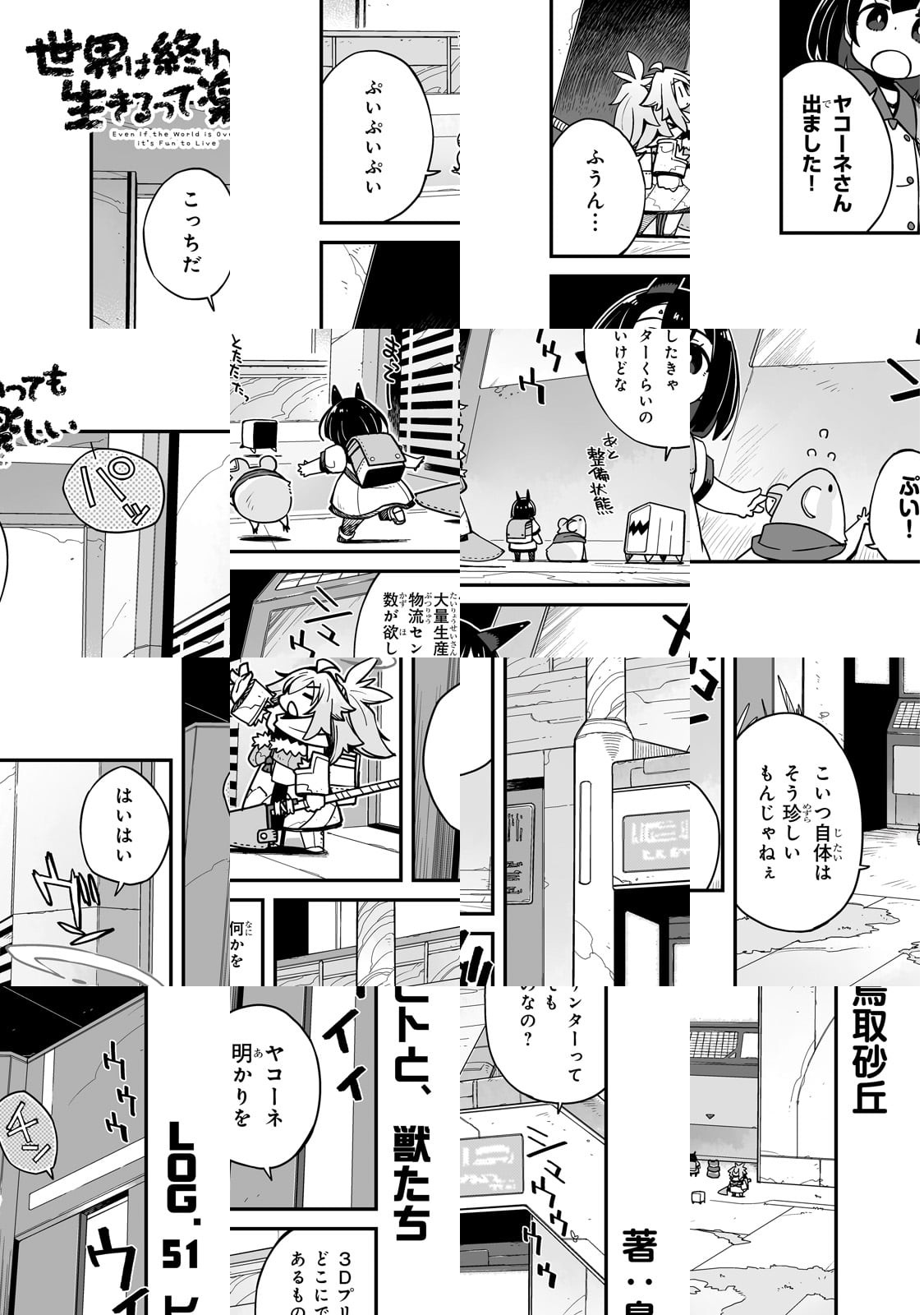 今日も発見や出会いがあるから――。滅びてしまった世界を往く少女たちは、様々なものとの出会いを経験する。過ぎ去った文明の残滓、自分達とは違うイキモノ、滅びと共に生まれた価値観……まだ世界には、色々あるんだ。だから――生きるのは、楽しいんだ。