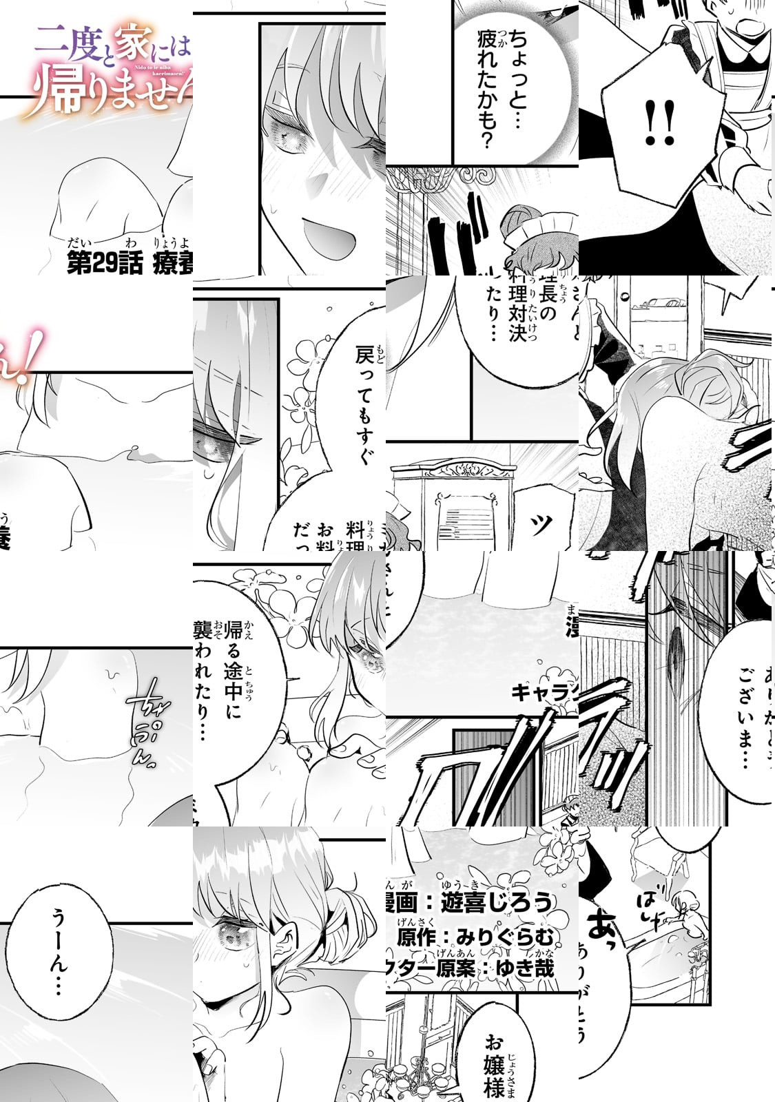 魚介と酒を糧に漫画を描いております遊喜じろうです!「二度と家には帰りません!」のボタニカルな世界観、すごく楽しく描かせていただいております。素敵な原作、そしてコミカライズ版でのチェルシーたちの物語をぜひお楽しみ下さい。