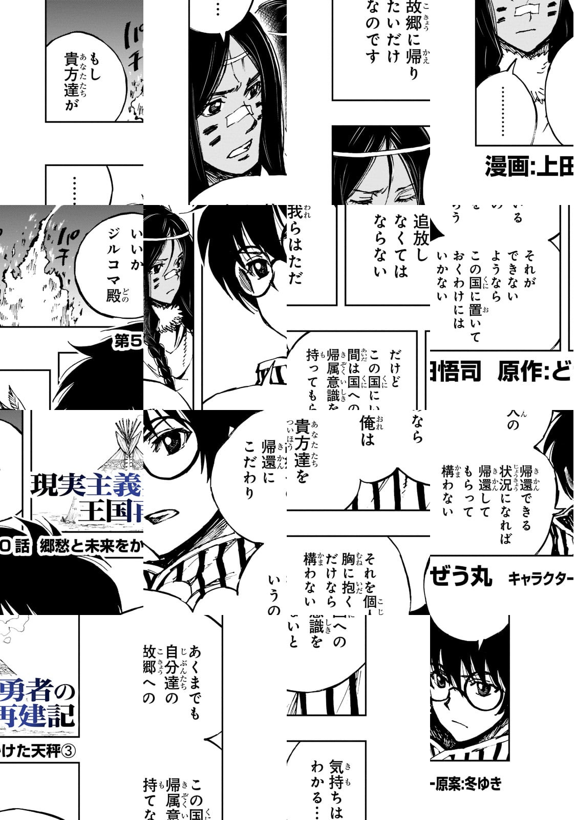 漫画を描いてる上田です。僕はなにをやってるかというと①原作からフキダシ用台詞の抽出をしながら、ページ数にどう合わせるか考える。②「ネーム作業」原作をどう絵にするか考え、ラフに絵を描き、コマ割り。③アナログで「下描き作業」しながら、原作でビジュアルの無いキャラや、城、道具、etcのデザイン。④③と同じく紙原稿に「ペン入れ作業」。⑤④の原稿をスキャン。⑥トーンやベタ、etcをデジタルで仕上げ、完成!こんな流れで、関係者の皆様の寛大さに甘え、楽しくやらせてもらってます。読者の皆様これからも応援ヨロシクお願いします。他に数タイトル(講談社)で単行本を出してます。そちらもヨロシクどうぞ。