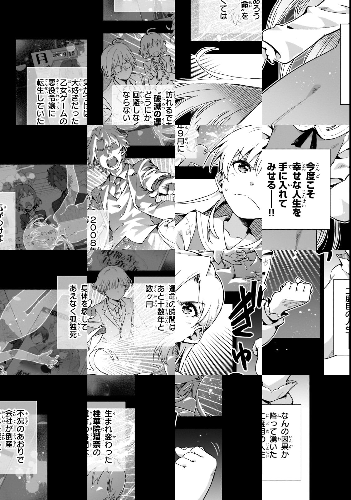 時はバブル崩壊後、時代の敗者となり困窮した生活を送っていた女性が、現代を舞台にした乙女ゲームの悪役令嬢・桂華院瑠奈に転生を果たす!ところが、転生後ほどなくして不況の影響で生家の危うい財政状況が判明。瑠奈は前世の知識を駆使して、生家の危機を救い、さらに報われないかつての"時代"の流れに抗うために立ち上がる――。