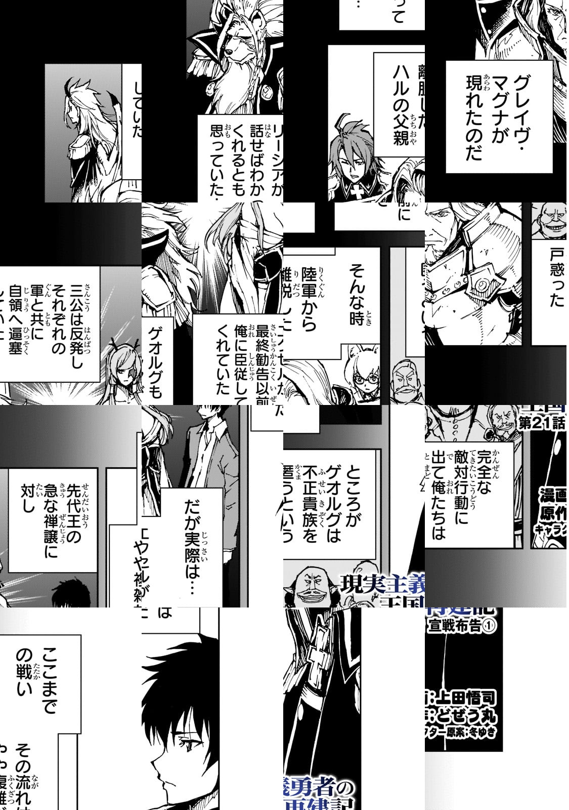 漫画を描いてる上田です。僕はなにをやってるかというと①原作からフキダシ用台詞の抽出をしながら、ページ数にどう合わせるか考える。②「ネーム作業」原作をどう絵にするか考え、ラフに絵を描き、コマ割り。③アナログで「下描き作業」しながら、原作でビジュアルの無いキャラや、城、道具、etcのデザイン。④③と同じく紙原稿に「ペン入れ作業」。⑤④の原稿をスキャン。⑥トーンやベタ、etcをデジタルで仕上げ、完成!こんな流れで、関係者の皆様の寛大さに甘え、楽しくやらせてもらってます。読者の皆様これからも応援ヨロシクお願いします。他に数タイトル(講談社)で単行本を出してます。そちらもヨロシクどうぞ。