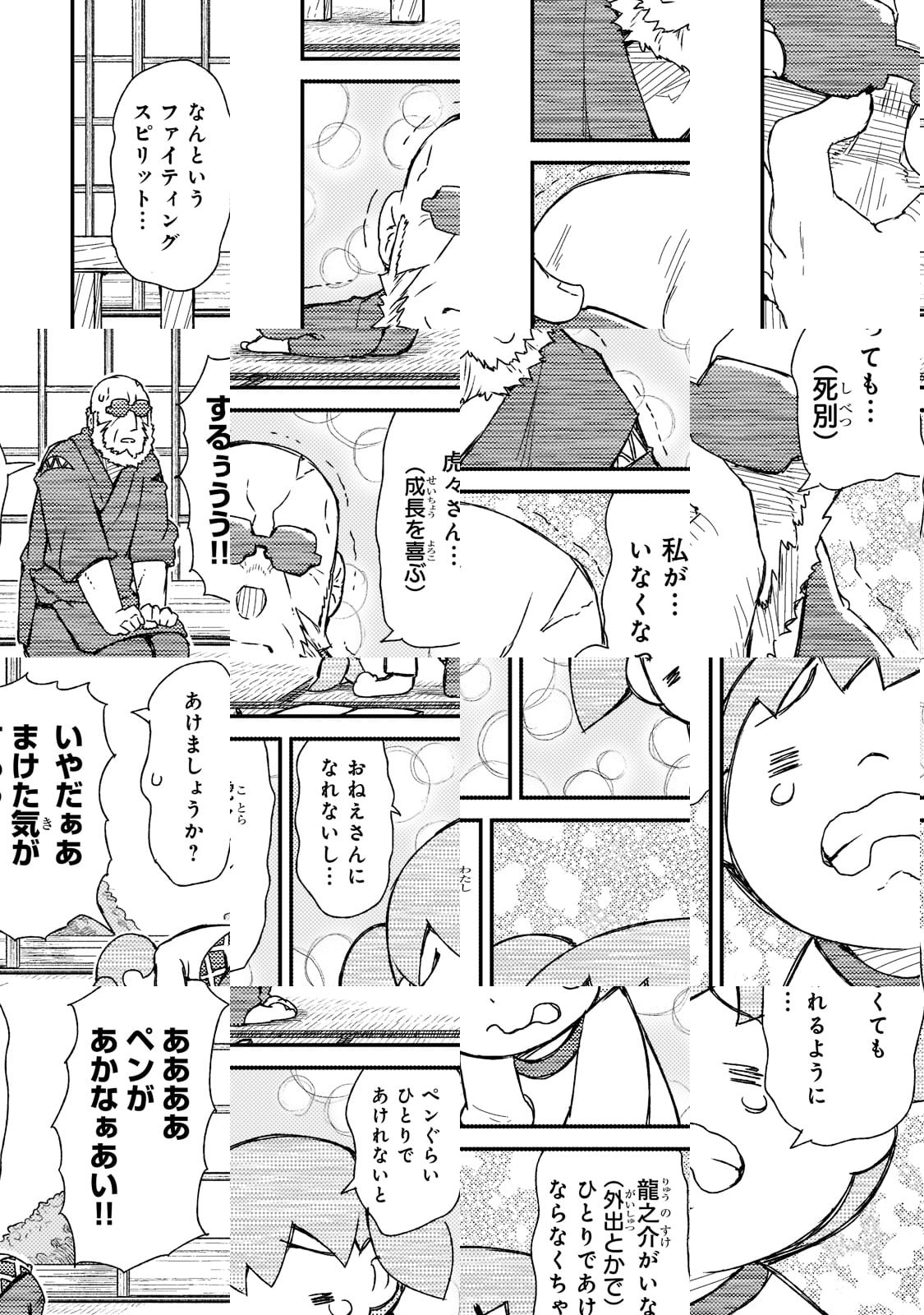 ひげにサングラスの“こわもて”なおじいちゃん・龍之介の家に、天真爛漫な孫、ことらがやってきた! 出戻ってきた娘に子守りを頼まれた龍之介は孫の期待に応えようとするが、虎々の要求は無茶ぶりばかりで…!? SNSで話題騒然の人気作!“こわもて”じいちゃんと“かわもて”な孫が紡ぐドタバタはーとふる?コメディが待望の連載化!