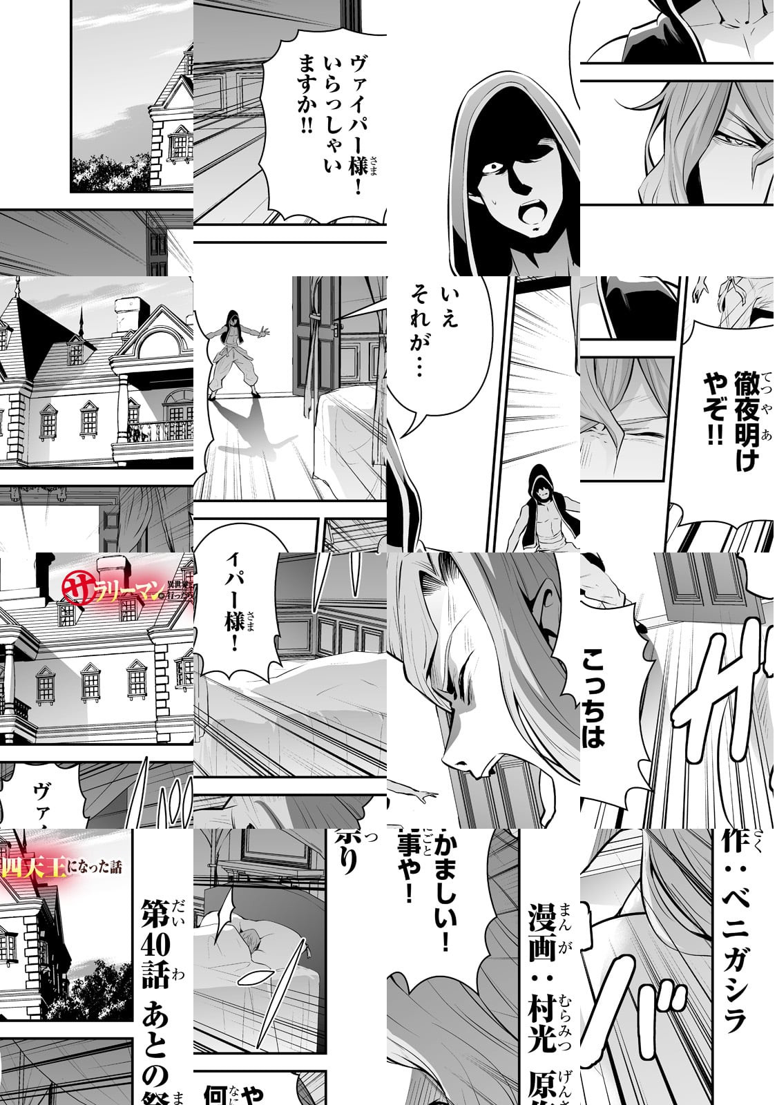 私、ベニガシラはサラリーマンしながら漫画家をしているんですが、まさかサラリーマンが主人公の漫画を描くとは思いませ んでした。チートスキルも、最強武器も持っていない、ただの サラリーマンが異世界で活躍するこのマンガ、楽しんでいただ けると幸いです。