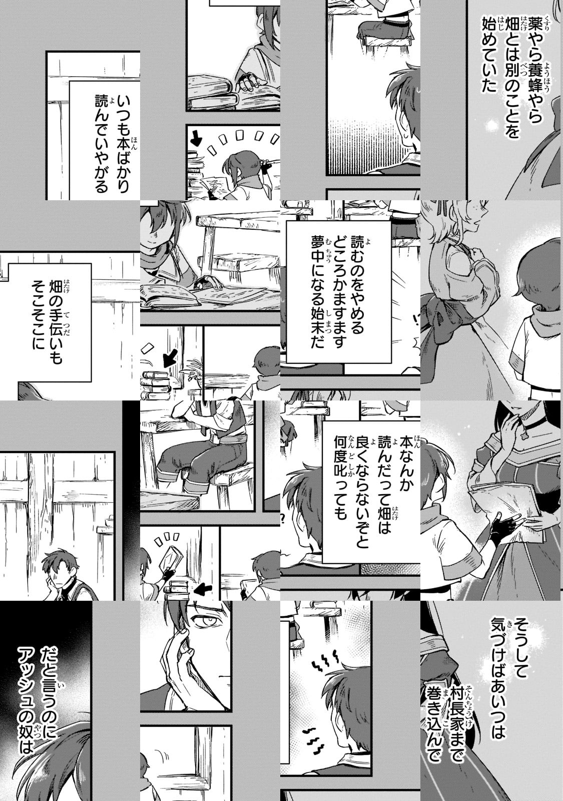 辺境の農村で暮らす少年アッシュは、前世らしき記憶を持っていた。彼は、貧しい生活を改善すべく、失われた文明の復興を目指し、叡智の詰まった書物を読み解き、理想の暮らしを手に入れようとするが……。幼きビブロフィリアが、世界に変革をもたらす文明復旧譚、開幕!