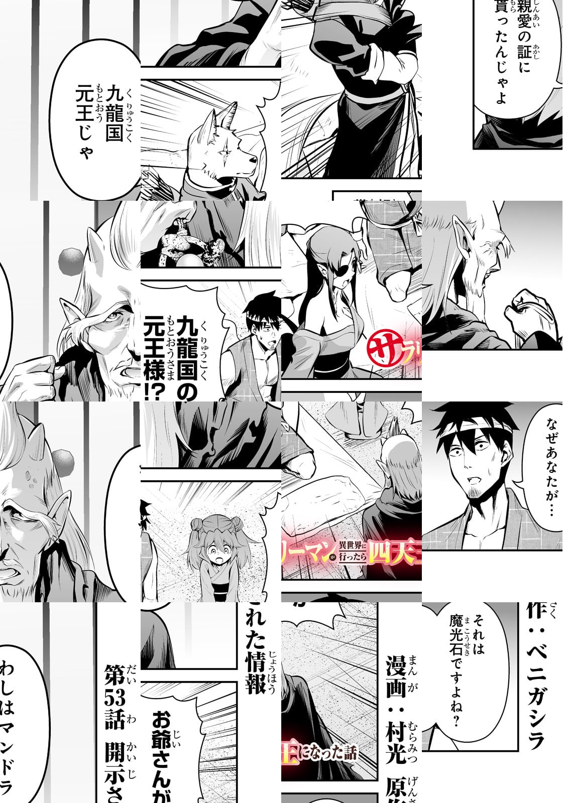 私、ベニガシラはサラリーマンしながら漫画家をしているんですが、まさかサラリーマンが主人公の漫画を描くとは思いませ んでした。チートスキルも、最強武器も持っていない、ただの サラリーマンが異世界で活躍するこのマンガ、楽しんでいただ けると幸いです。